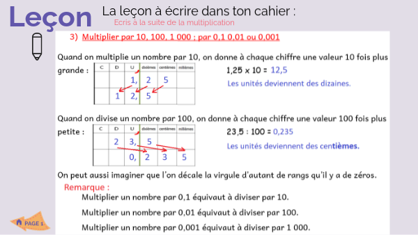 Astuce : transforme la multiplication en division : x 0,1 =5 2 x 5 = 10 Il faut 2 chiffres aprsè la virgule 0,2 x 0,5 = 0,1 (ou 0,10)