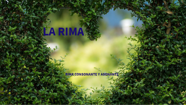 La rima tiene que ver con la parte sonora o acústica del lenguaje y es la que se encarga de darle musicalidad. La rima es la repetición de sonidos desde la última vocal acentuada de cada verso.La rima es propia de la poesía. Antiguamente, la poesía fue escrita para ser cantada. Esta es una característica de la poesía: su ritmo y musicalidad. Para lograr este ritmo se la escribe respetando la métrica (número de sílabas) y la rima (terminaciones sonoras). Para ello, se tiene especial cuidado en la selección de las palabras, su sonido y su medida.Hay dos tipos de rima: la asonante y la consonante. En los dos casos, la rima se basa en el final del verso desde la última vocal acentuada.