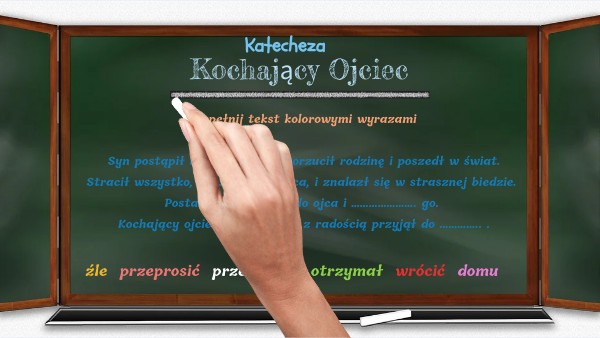 Uzupełnij tekst kolorowymi wyrazami Syn postąpił bardzo ………… . Porzucił rodzinę i poszedł w świat. Stracił wszystko, co ………….. od ojca, i znalazł się w strasznej biedzie. Postanowił ……………… do ojca i …………………. go. Kochający ojciec …………… mu i z radością przyjął do ………….. .