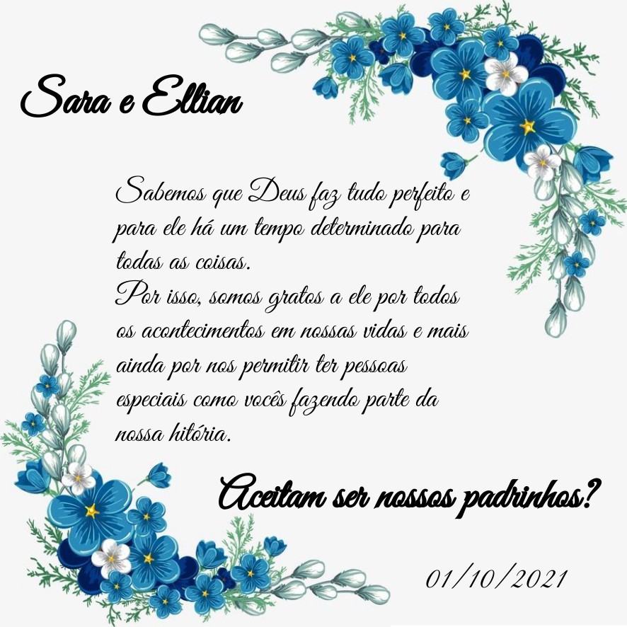 Sabemos que Deus faz tudo perfeito e para ele há um tempo determinado para todas as coisas. Por isso, somos gratos a ele por todos os acontecimentos em nossas vidas e mais ainda por nos permitir ter pessoas especiais como vocês fazendo parte da nossa hitória.
