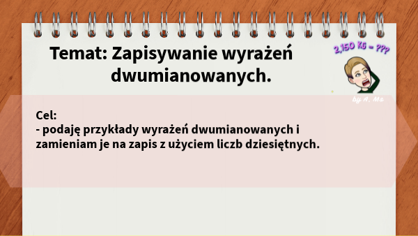 Temat: Zapisywanie wyrażeń dwumianowanych.