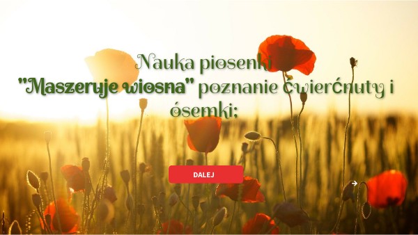 Nauka piosenki "Maszeruje wiosna" poznanie ćwierćnuty i ósemki;