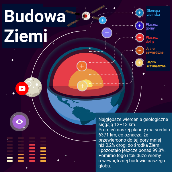Najgłębsze wiercenia geologiczne sięgają 12–13 km. Promień naszej planety ma średnio 6371 km, co oznacza, że przewiercono do tej pory mniej niż 0,2% drogi do środka Ziemi i pozostało jeszcze ponad 99,8%. Pomimo tego i tak dużo wiemy o wewnętrznej budowie naszego globu.