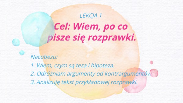 Cel: Wiem, po co pisze się rozprawki.