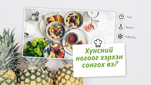 Бид өдөр тутамдаа идэх хоол шим тэжээлийнхээ орц материалаа шинэ хүнсний ногооноос авч байх хэрэгтэй.