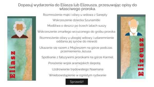 Dopasuj wydarzenia do Eliasza lub Elizeusza, przesuwając opisy do własciwego proroka.