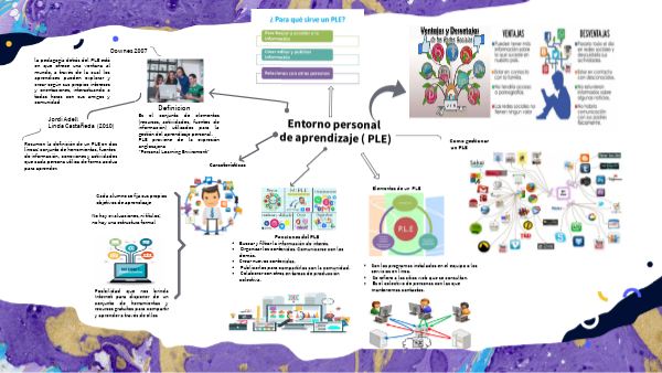 Es el conjunto de elementos (recursos, actividades, fuentes de información) utilizados para la gestión del aprendizaje personal. PLE proviene de la expresión anglosajona "Personal Learning Enviroment"