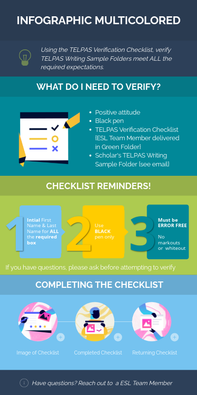 Using the TELPAS Verification Checklist, verify TELPAS Writing Sample Folders meet ALL the required expectations.