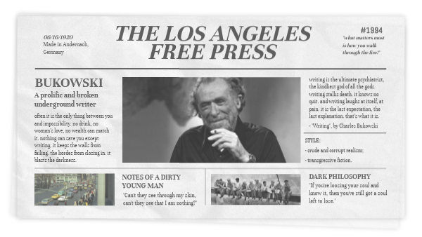beware the average man the average womanbeware their love, their love is average seeks average but there is genius in their hatred there is enough genius in their hatred to kill you to kill anybody not wanting solitude not understanding solitude they will attempt to destroy anything that differs from their own not being able to create art they will not understand art they will consider their failure as creators only as a failure of the world not being able to love fully they will believe your love incomplete and then they will hate you and their hatred will be perfect like a shining diamond like a knife like a mountain like a tiger like hemlock their finest art