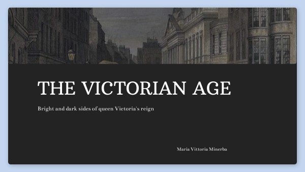 The Victorian age is that period of time, between approximately 1820 and 1914, corresponding roughly to Queen Victoria's Reign.It was caracterised by a consistent number of reforms, huge discoveries, technological and scientific progress, but also by poverty, social ineguality and injustice. It is therfore regarded as an age of noticeable Contraddictions.