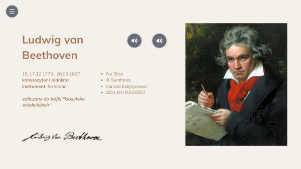 15-17.12.1770- 26.03.1827kompozytor i pianista instrument: fortepian zaliczany do trójki "klasyków wiedeńskich"