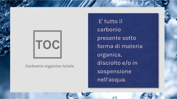 E' tutto il carbonio presente sotto forma di materia organica, disciolto e/o in sospensione nell’acqua.