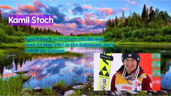 Kamil Stoch is 33 years old. He was born 25 May 1987 in the Zakopane. He's Polish ski jumper.