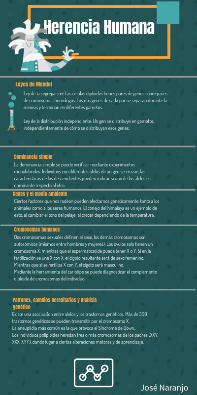 Ley de la segregación: Las células diploides tienes pares de genes sobre pares de cromosomas homologos. Los dos genes de cada par se separan durante la meiosis y terminan en diferentes gametos.Ley de la distribución independiente: Un gen se distribuye en gametos, independientemente de cómo se distribuyan esos genes.