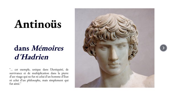 "... cet exemple, unique dans l’Antiquité, de survivance et de multiplication dans la pierre d’un visage qui ne fut ni celui d’un homme d’État ni celui d’un philosophe, mais simplement qui fut aimé."
