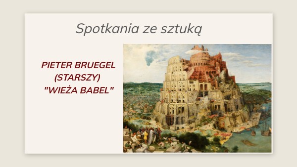 Cel:- poznam dzieło Pietera Bruegela (Starszego), - poznam historię biblijną związaną z wieżą Babel, - odczytam symbole wpisane w utwór,
