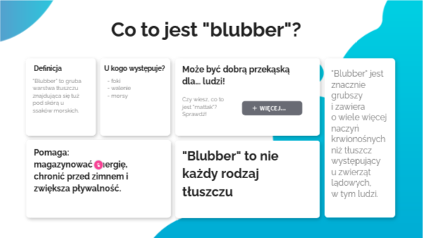 "Blubber" to gruba warstwa tłuszczu znajdująca się tuż pod skórą u ssaków morskich.