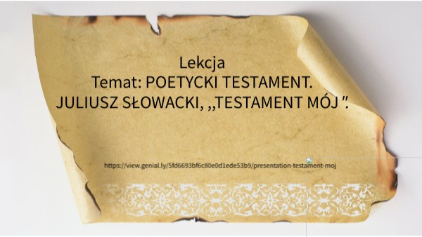 LekcjaTemat: POETYCKI TESTAMENT. JULIUSZ SŁOWACKI, ,,TESTAMENT MÓJ".