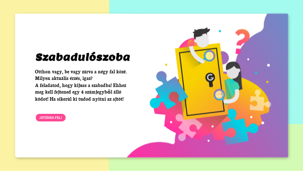 Otthon vagy, be vagy zárva a négy fal közé.Milyen aktuális érzés, igaz? A feladatod, hogy kijuss a szabadba! Ehhez meg kell találnod a 4 kódot! Ha sikerül, ki tudod nyitni az ajtót!