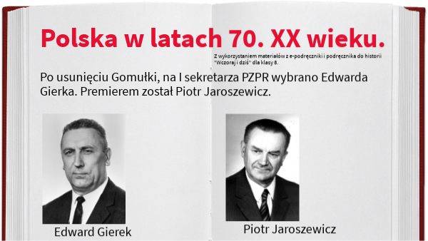 Po usunięciu Gomułki, na I sekretarza PZPR wybrano Edwarda Gierka. Premierem został Piotr Jaroszewicz.