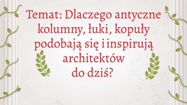Temat: Dlaczego antyczne kolumny, łuki, kopuły podobają się i inspirują architektów do dziś?