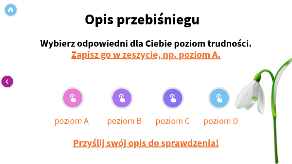 Ułóż opis przebiśniegu. Skorzystaj z pytań i wyrazów z ramki. Pamiętaj o 3 akapitach!