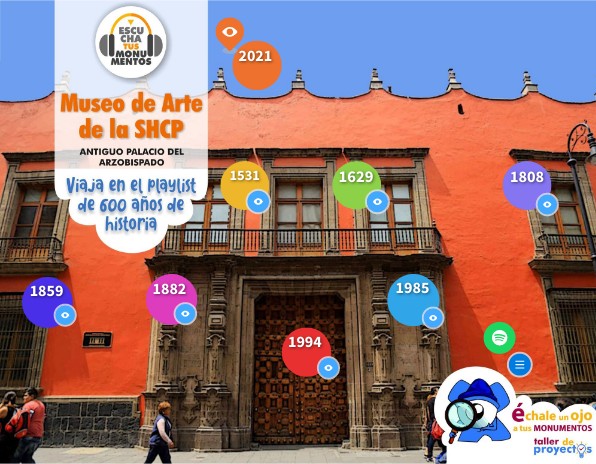 Recorrido histórico musical donde se presentan acontecimientos, anécdotas de la historia de este edificio histórico de la Ciudad de México aderezados con la música de aquellos años. Proyecto elaborado por Erika Espinosa del Taller de Proyectos de Échale un ojo a tus monumentos CNMH-INAH.