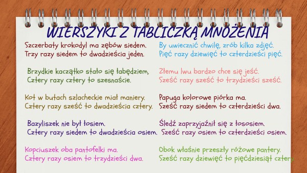 WIERSZYKI Z TABLICZKĄ MNOŻENIA