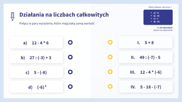 Połącz w pary wyrażenia, które mają taką samą wartość
