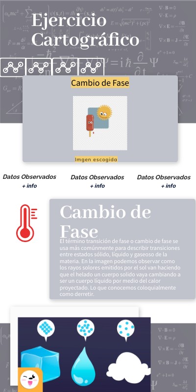 El término transición de fase o cambio de fase se usa más comúnmente para describir transiciones entre estados sólido, líquido y gaseoso de la materia. En la imagen podemos observar como los rayos solores emitidos por el sol van haciendo que el helado un cuerpo solido vaya cambiando a ser un cuerpo líquido por medio del calor proyectado. Lo que conocemos coloquialmente como derretir.