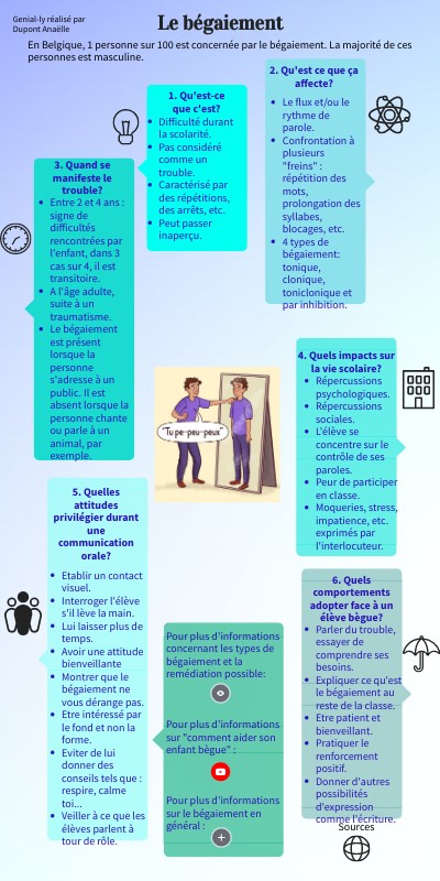 Pour plus d'informations concernant les types de bégaiement et la remédiation possible: Pour plus d'informations sur "comment aider son enfant bègue" : Pour plus d'informations sur le bégaiement en général :