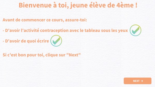 Avant de commencer ce cours, assure-toi: - D'avoir l'activité contraception avec le tableau sous les yeux - D'avoir de quoi écrire