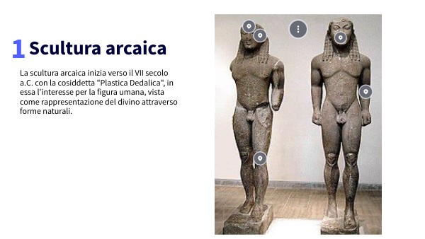 La scultura arcaica inizia verso il VII secolo a.C. con la cosiddetta "Plastica Dedalica", in essa l'interesse per la figura umana, vista come rappresentazione del divino attraverso forme naturali.