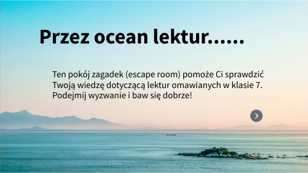 Ten pokój zagadek (escape room) pomoże Ci sprawdzić Twoją wiedzę dotyczącą lektur omawianych w klasie 7. Podejmij wyzwanie i baw się dobrze!