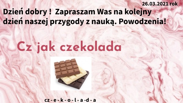Dzień dobry ! Zapraszam Was na kolejny dzień naszej przygody z nauką. Powodzenia!