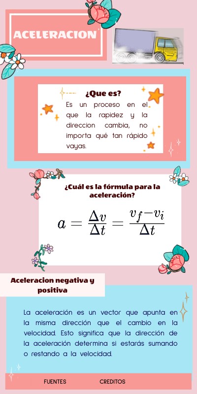 La aceleración es un vector que apunta en la misma dirección que el cambio en la velocidad. Esto significa que la dirección de la aceleración determina si estarás sumando o restando a la velocidad.
