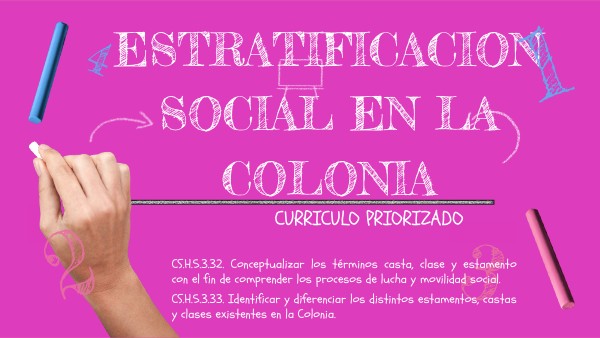 CS.H.5.3.32. Conceptualizar los términos casta, clase y estamento con el fin de comprender los procesos de lucha y movilidad social. CS.H.5.3.33. Identificar y diferenciar los distintos estamentos, castas y clases existentes en la Colonia.