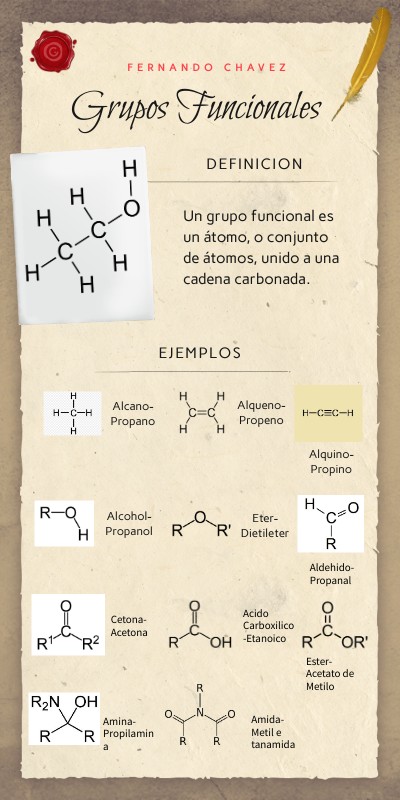 Un grupo funcional es un átomo, o conjunto de átomos, unido a una cadena carbonada.