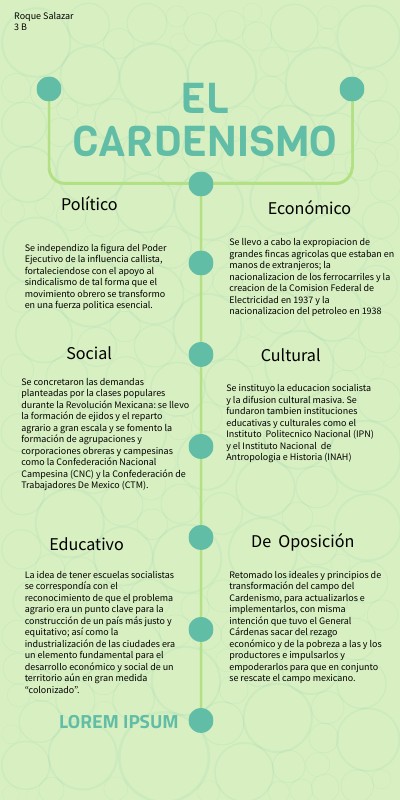 Se concretaron las demandas planteadas por la clases populares durante la Revolución Mexicana: se llevo la formación de ejidos y el reparto agrario a gran escala y se fomento la formación de agrupaciones y corporaciones obreras y campesinas como la Confederación Nacional Campesina (CNC) y la Confederación de Trabajadores De Mexico (CTM).