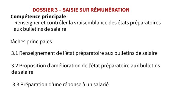 3.1 Renseignement de l’état préparatoire aux bulletins de salaire 3.2 Proposition d’amélioration de l’état préparatoire aux bulletins de salaire 3.3 Préparation d’une réponse à un salarié