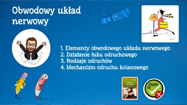 1. Elementy obwodowego układu nerwowego 2. Działanie łuku odruchowego 3. Rodzaje odruchów 4. Mechanizm odruchu kolanowego