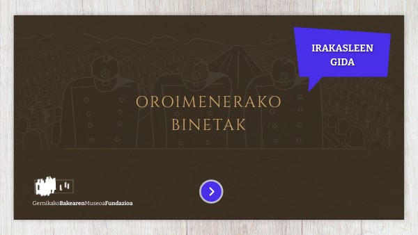 Gida didaktiko honek Gerra Zibila jorratzen du "Oroitzapenerako binetak" erakusketako bineta grafikoak erabiliz. Erakusketa 1936-37an Bilboko prentsan agertutako bineten inguruko ikerketa-lan sakon batetik sortu zen.