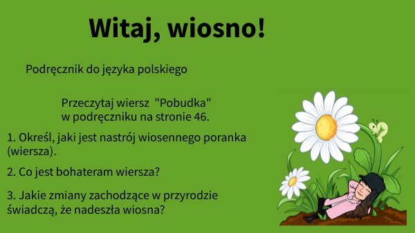 Przeczytaj wiersz "Pobudka"w podręczniku na stronie 46.