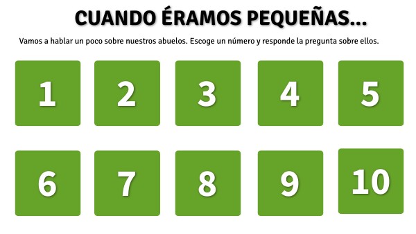 Vamos a hablar un poco sobre nuestros abuelos. Escoge un número y responde la pregunta sobre ellos.