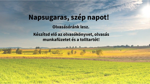 Készítsd elő az olvasókönyvet, olvasás munkafüzetet és a tolltartót!
