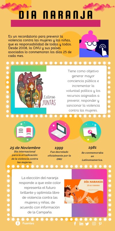 La elección del naranja responde a que este color representa el futuro brillante y optimista libre de violencia contra las mujeres y niñas, de acuerdo con información de la Campaña.
