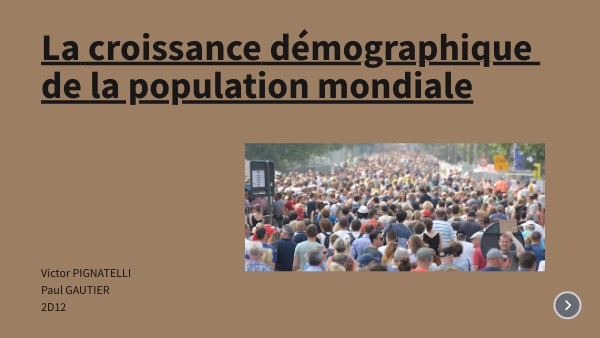 Depuis l’antiquité, la croissance de la population mondiale a toujours augmenté, mais c'est acceléré depuis le 18ème siècle et à explosé au 19 iéme siécle. La population mondiale devrait atteindre 9 milliards d’individus en 2050 et près de 11 milliards d’ici 2100. Afin de rendre l’humanité viable, il est essentiel de modifier notre mode de vie. Ces transformations doivent absolument être accompagnées de politiques démographiques, par exemple un renforcement de l’éducation des femmes et de leur autonomie ainsi que des mesures de planning familial.