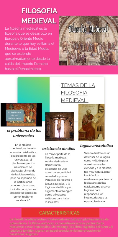 La filosofía medieval es la filosofía que se desarrolló en Europa y Oriente Medio durante lo que hoy se llama el Medioevo o la Edad Media, que se extiende aproximadamente desde la caída del Imperio Romano hasta el Renacimiento.