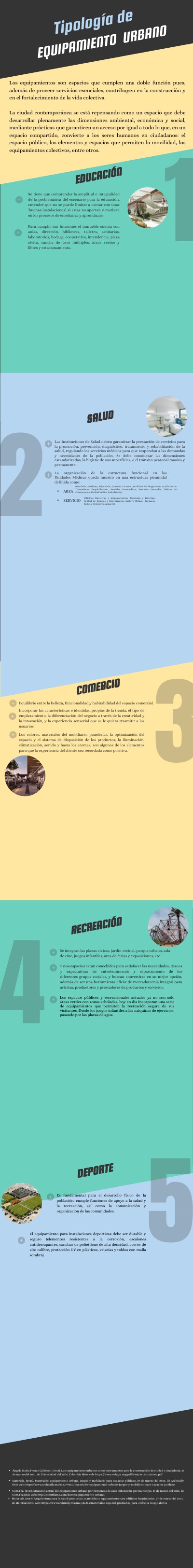 - Ángela María Franco Calderón. (2012). Los equipamientos urbanos como instrumentos para la construcción de ciudad y ciudadanía. 27 de marzo del 2021, de Universidad del Valle, Colombia Sitio web: https://www.redalyc.org/pdf/3416/341630320003.pdf