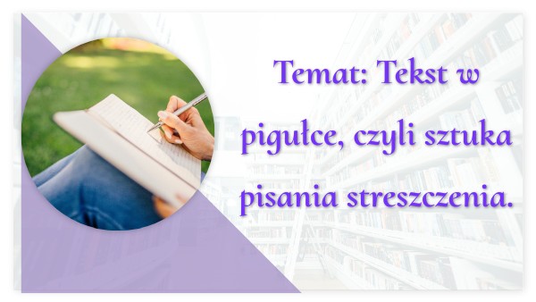 Temat: Tekst w pigułce, czyli sztuka pisania streszczenia.